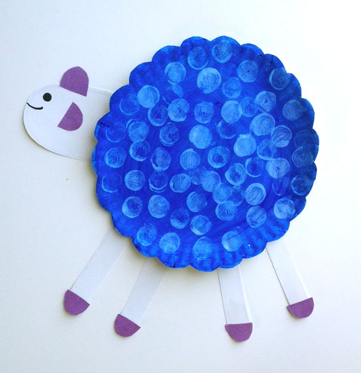 2. Paint the sheep's body dark blue by mixing blue and purple paint. (Tip: Drop a quarter-size amount of paint in the center of the plate and spread the paint using a cotton ball.)